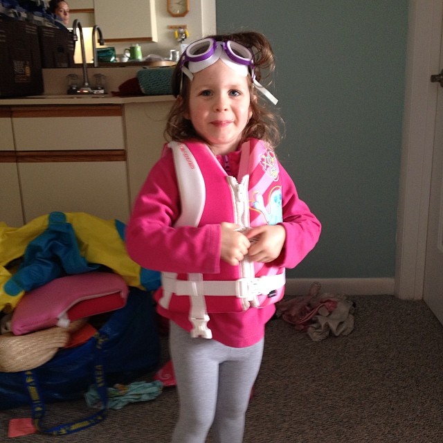 Norah is prepared to swim…to some degree.