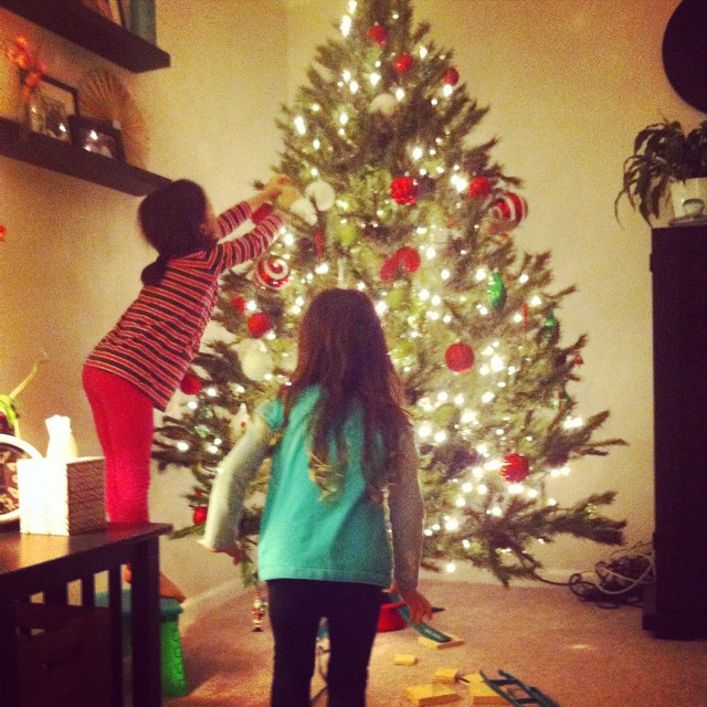 Decorating the tree.