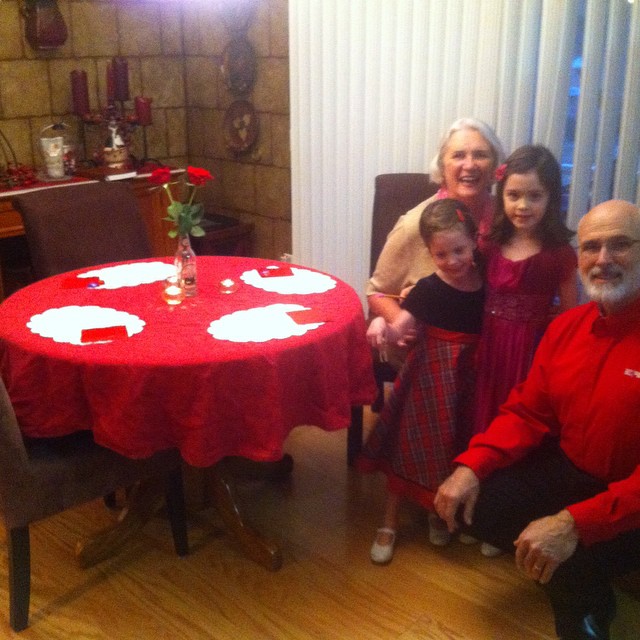 Gogo and Papa planned a special Valentines dinner for the girls tonight. They were so excited! They put on pretty dresses and shoes and even a little perfume and lip gloss. After taking the picture Norah said, “ok Mommy you can leave now.”