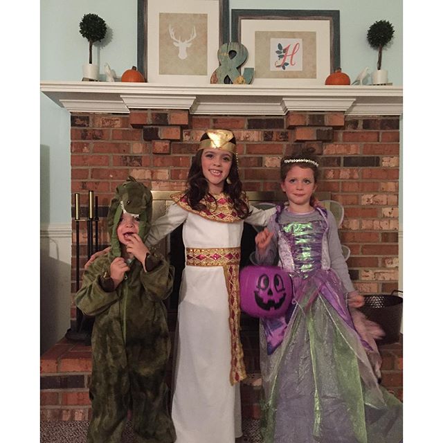 Halloween 2015. A dinosaur, Cleopatra, and a Pixie Princess! Halloween was pretty low key this year but the kids costumes were on point and cost no more than 6 bucks! Goodwill and dress up box for the win! Happy Halloween!