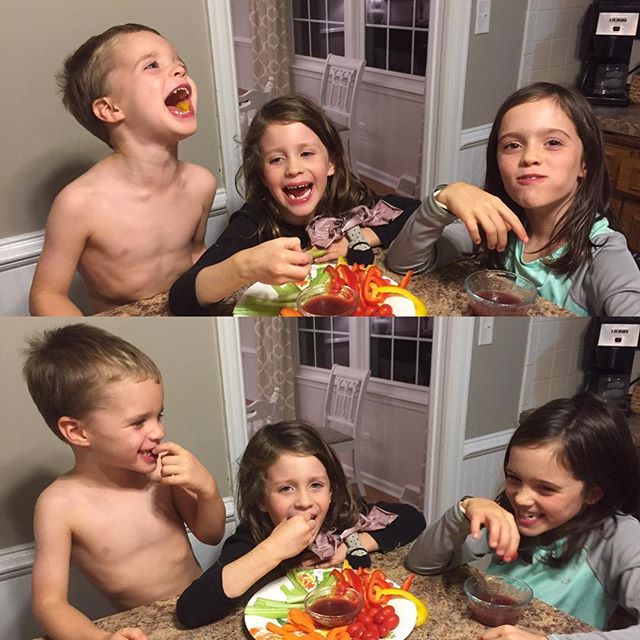 My peeps...gosh, I love them! Snacking while decorating for Christmas. #hinsonchristmas2016 #norahgrace #hannahnoelle #liamjoseph