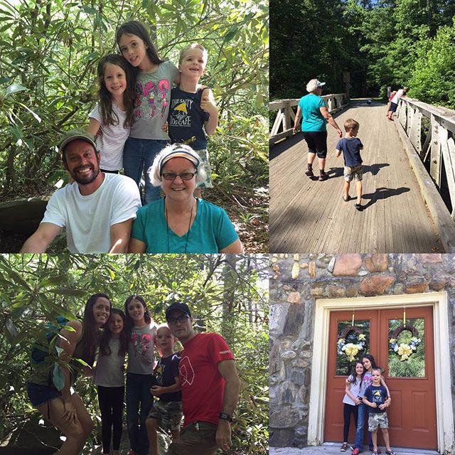 First morning hikes with my fam! Sweet trail right behind the campground that followed the river, that led up to a beautiful old church and a swimming hole. #hannahnoelle #norahgrace #liamjoseph #hinsoncampathon2017